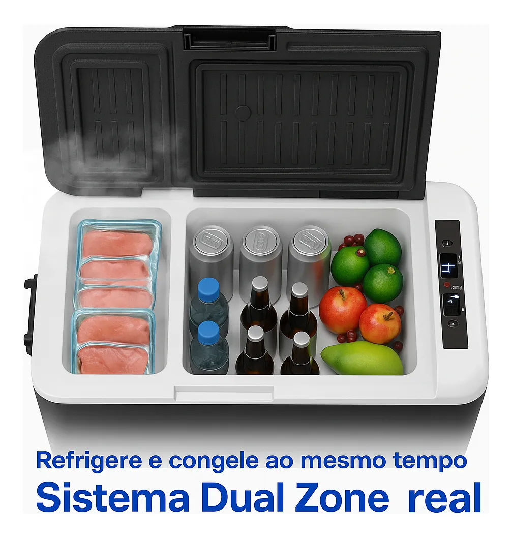 – Capacidade Dual Zone: Com 30 litros de espaço, a geladeira possui compartimentos separados para resfriamento e congelamento, permitindo que você armazene diferentes tipos de alimentos e bebidas simultaneamente.
