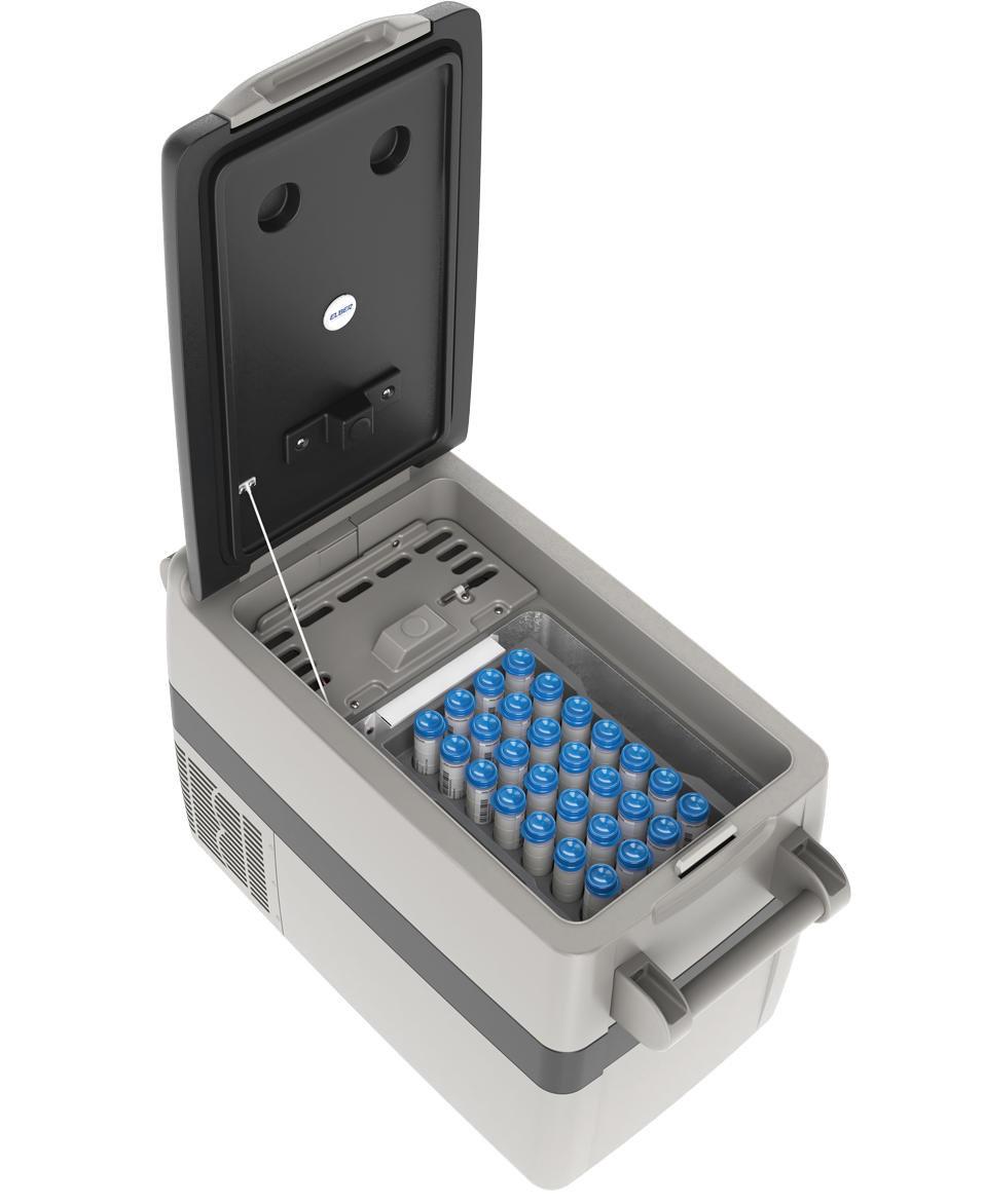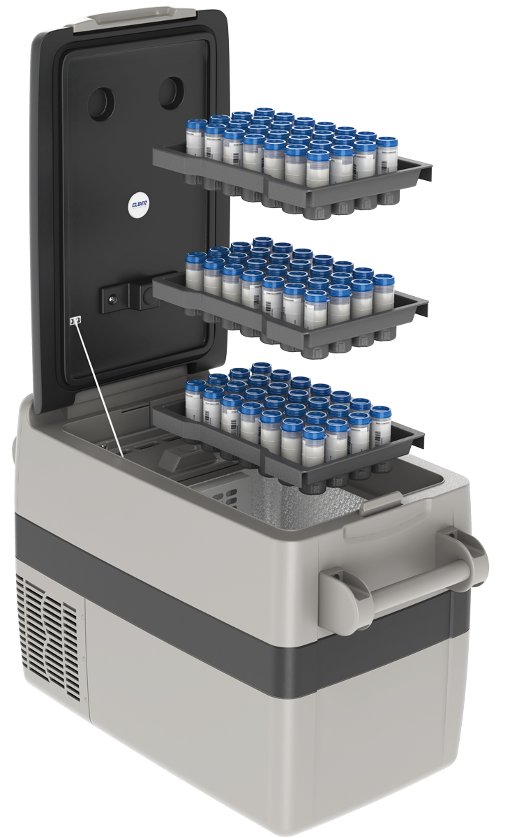 A geladeira portátil para amostras de leite 24 litros foi desenvolvida especificamente para o transporte de leite. Dessa forma, ela possui sistema de ventilação interna e espaço otimizado para transportar até 72 amostras de 50ml em temperatura entre +2°C a +8°C, com regulagem pelo painel digital. É um equipamento resistente e feito para as mais severas condições de trabalho. Aceita inclinações, tolera buracos e solavancos da estrada. Funciona ligada na tomada veicular em 12V/24V ou diretamente na energia elétrica convencional, com o uso da fonte opcional em 110V/220V. Além disso, o produto é silencioso, com compressor hermético e baixo consumo de bateria!